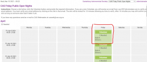 This year we have a new tool to manage our busy open night schedule. It’s simple to use and takes just a minute or two to volunteer.